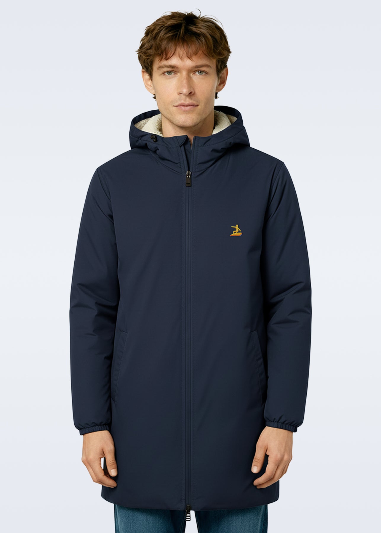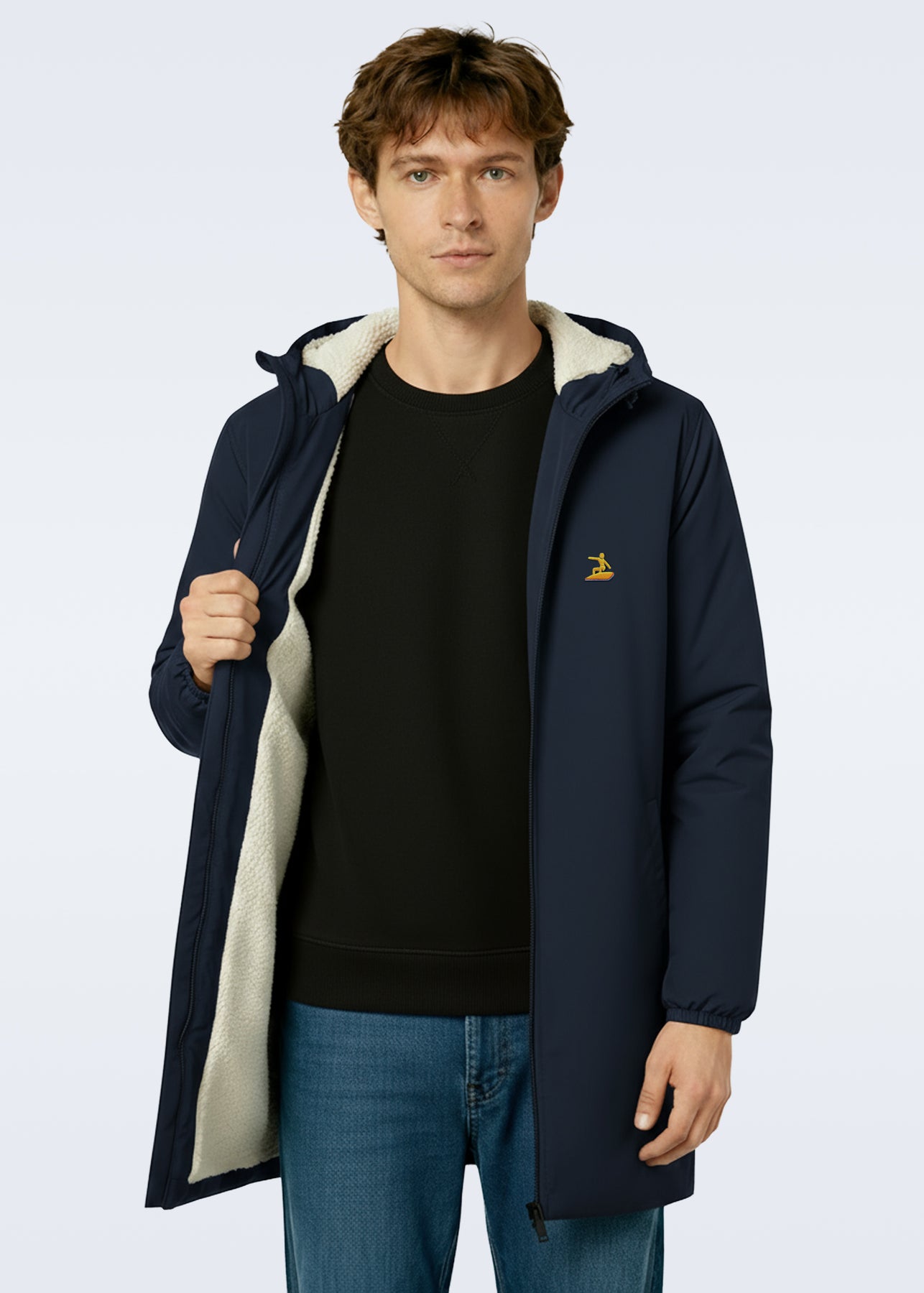 Parka imperméable doublée en Sherpa pour homme et femme en polyester recyclé kaki, brodé de notre logo Easysurf en trois couleur.