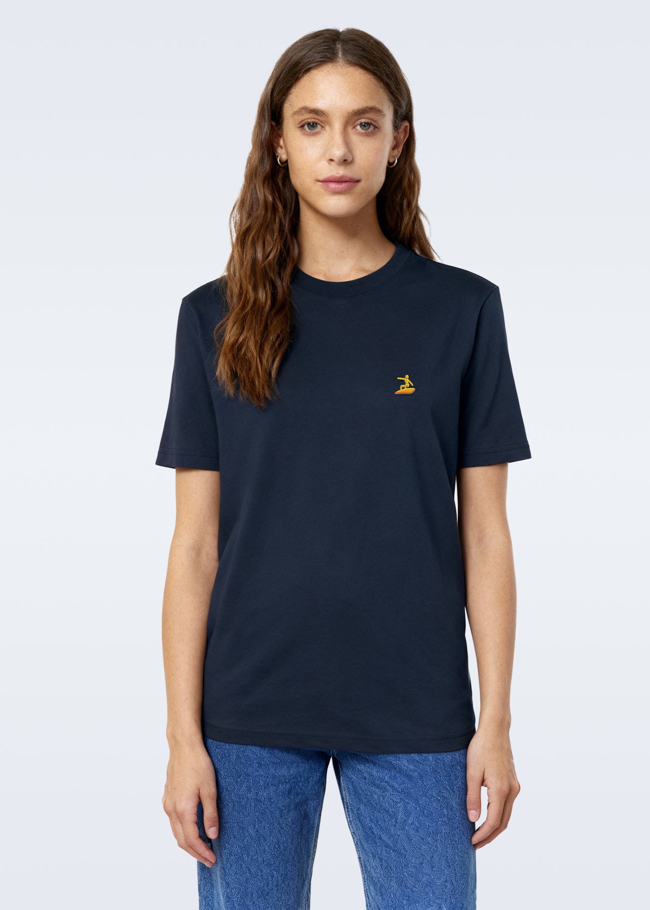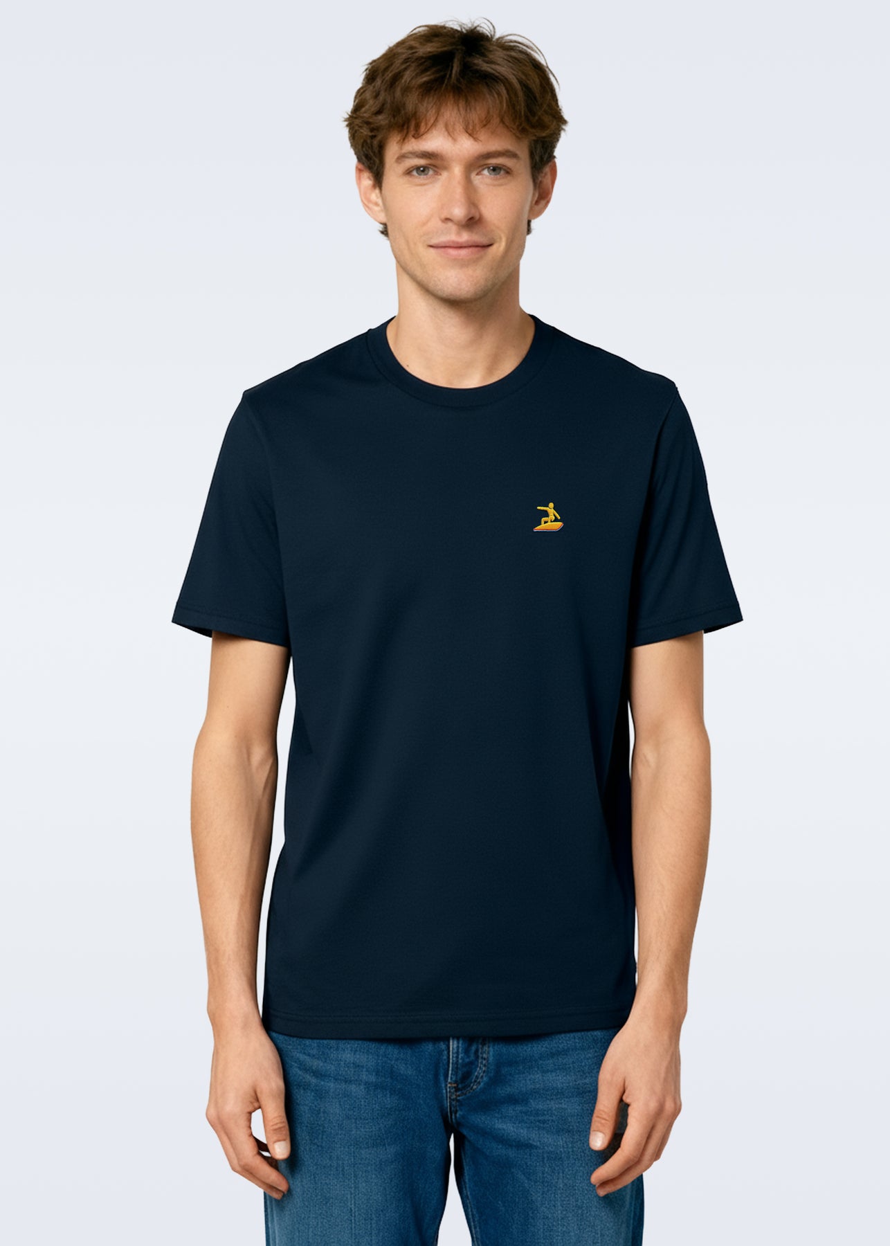 Tee-shirt homme en coton biologique bleu marine, brodé de notre logo Easysurf en trois couleur sur le coeur.