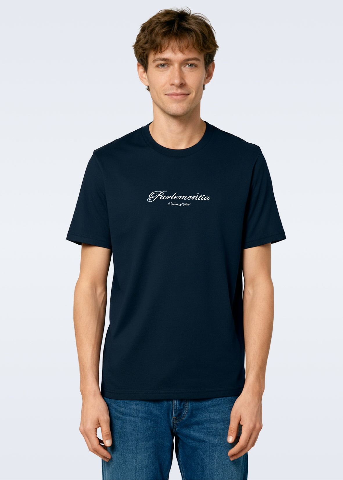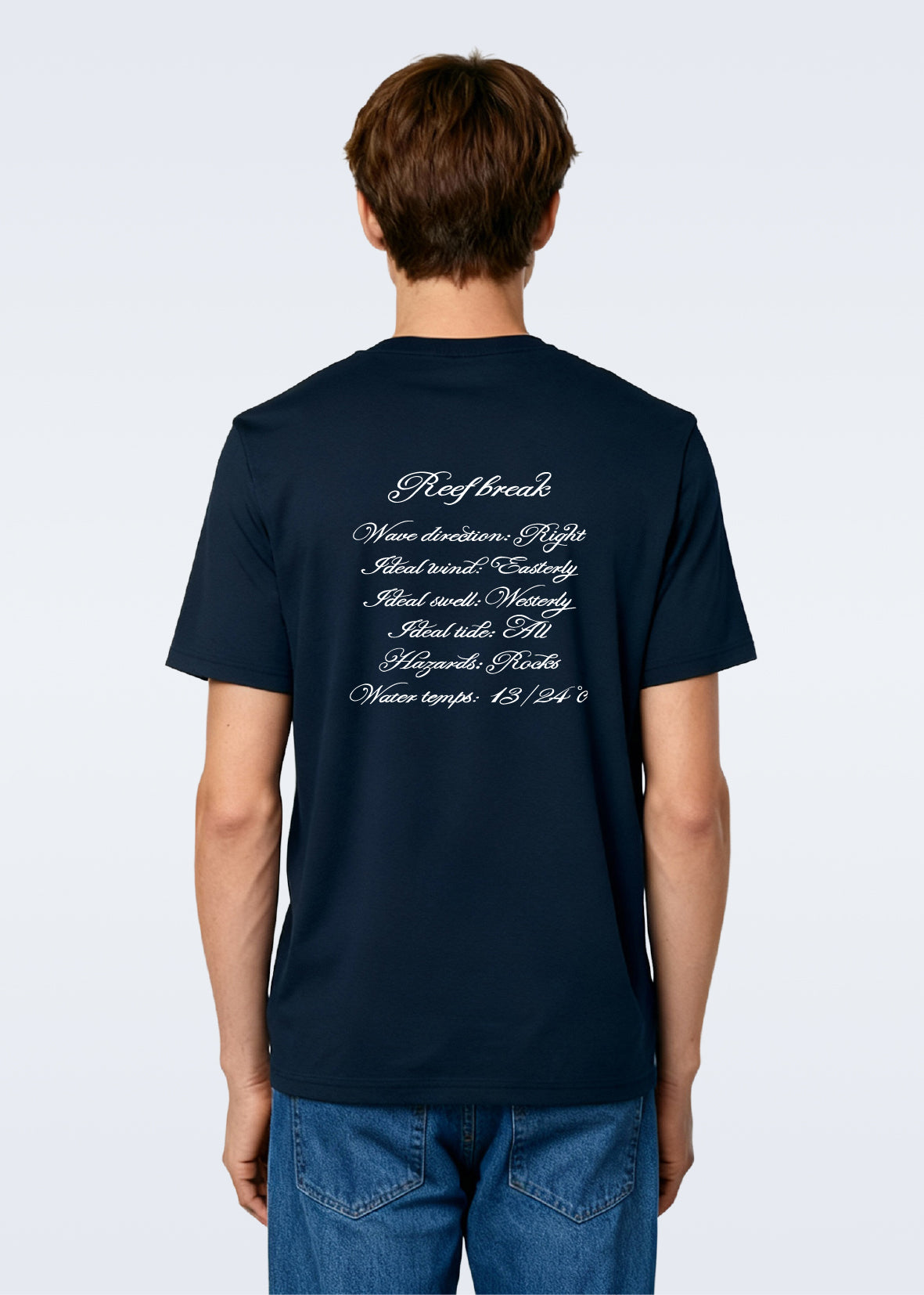 Tee-shirt homme en coton biologique bleu marine, floqué de notre logo Reef Break en blanc sur le torse et dans le dos.